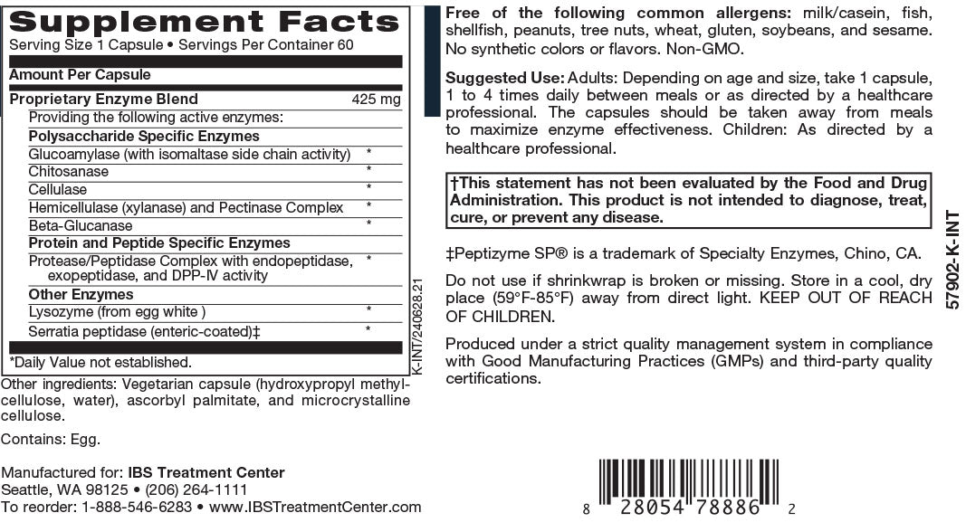 Suggested Use: Adults: Depending on age and size, take 1 capsule, 1 to 4 times daily between meals or as directed by a healthcare professional. The capsules should be taken away from meals to maximize enzyme effectiveness. Children: As directed by a healthcare professional.